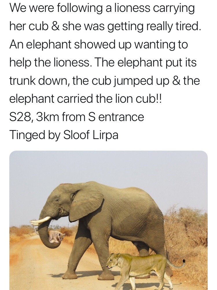 I’m telling you elephants are chill motherfuckers. They fucking love being helpful. They once defended a man with heatstroke from a truck that came to rescue him. They knew he was sick, laying against a tree for shade. They were watching over him and petting him, and they threatened to charge the vehicle for coming towards him. Another person passed out, and elephants cried over her and buried her body in a traditional elephant funeral. (Piling branches on her). And were quite spooked when she got up later.