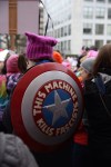 Woman with shield at Woman’s March on Washington