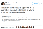 Also, aside from this completely uneducated reasoning as to why minimum wage was created…
