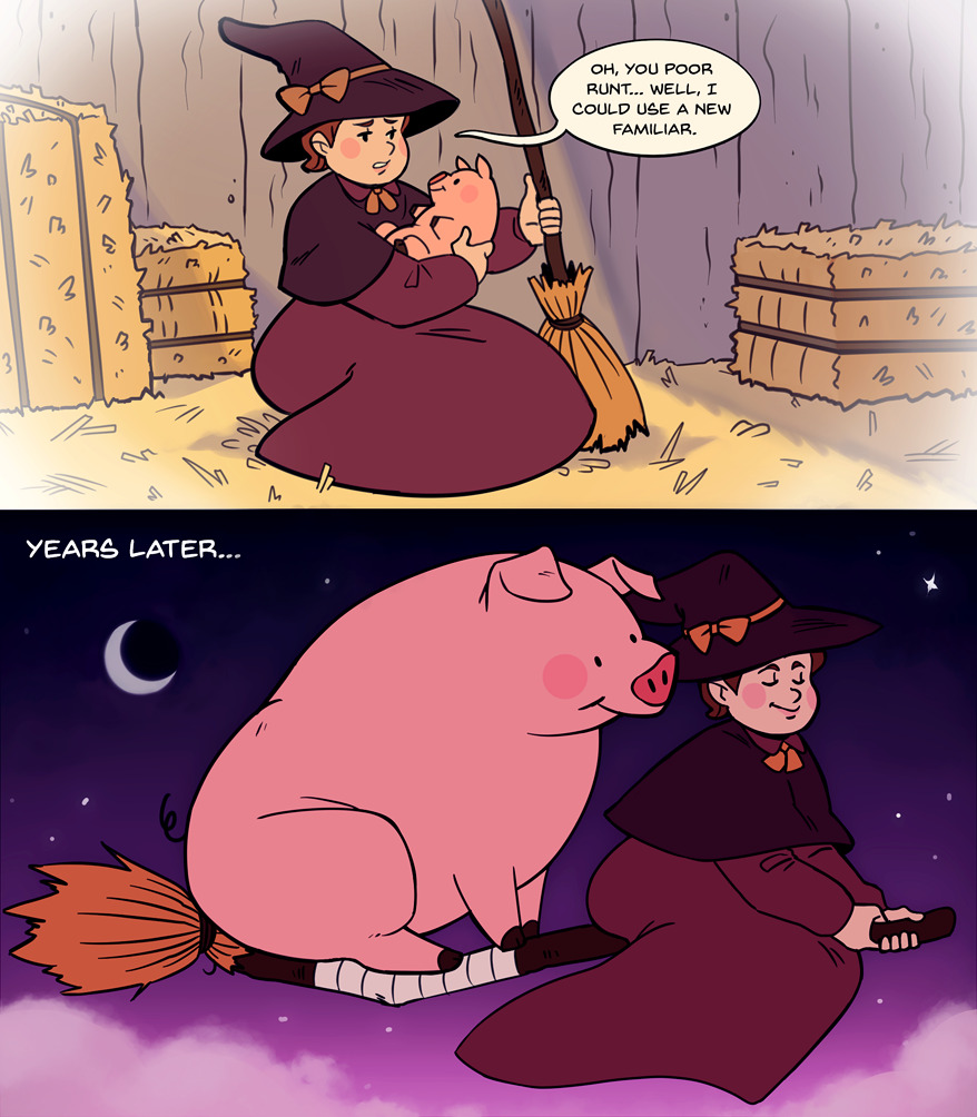 People have been making illustrations with the prompt of “Witch adopting a child or animal.” So I wanted to do my own.