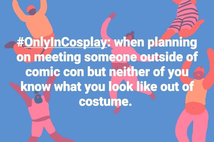 Sourced from FnC Facebook page. Details of cosplay can be found via link. #OnlyInCosplay: when planning on meeting someone outside of comic con but neither of you know what you look like out of costume. https://www.facebook.com/FoodAndCosplay/photos/a.575676505785930.1073741831.571491416204439/1926915557328678/?type=3 Powered by IFTTT