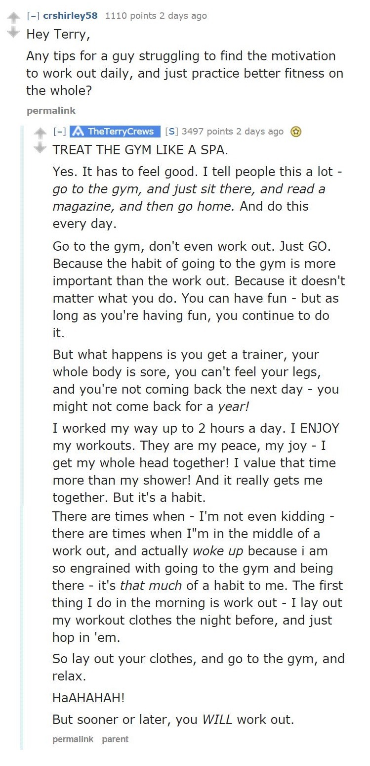 To be honest, this was the healthiest advice for getting into working out I’ve ever read, and it really was the inspiration for me to start running and going to the gym.