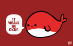 [Drawing of a red whale saying “It whale be okay.”]