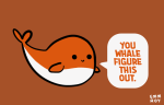 [Drawing of an orange whale saying “You whale figure this out.]