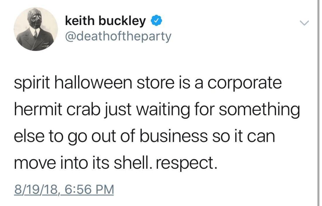 sandrasoapboxcosplay Uncategorized August 23, 2018December 6, 2018 1 Minute whitepeopletwitter: Every time a store dies Share this: Share on X (Opens in new window) X Share on Facebook (Opens in new window) Facebook Like Loading... Related Published by sandrasoapboxcosplay View all posts by sandrasoapboxcosplay Published August 23, 2018December 6, 2018
