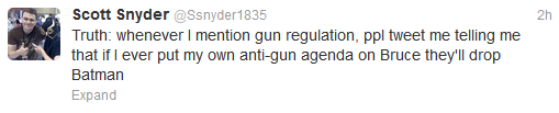 For anyone who watched “Batman: The Brave and the Bold,” the Batmite finale had a whole thing on this – Batman NEVER EVER uses a gun. Nobody tell his right-wing fans about that…