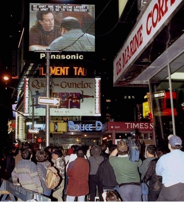sandrasoapboxcosplay Uncategorized October 13, 2018December 6, 2018 1 Minute historicaltimes: New Yorkers stop to watch the “Seinfeld” finale, Times Square, 1998 via reddit Share this: Share on X (Opens in new window) X Share on Facebook (Opens in new window) Facebook Like Loading... Related Published by sandrasoapboxcosplay View all posts by sandrasoapboxcosplay Published October 13, 2018December 6, 2018