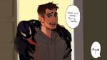 Todd takes Anette back to the demon realm, holding her tight against him as he travels across the bleak and forebidding landscape; such a sharp contrast to the rosy warmth of Anette’s home. Eventually, in a far corner of his home plane, Todd finds what he is looking for. It is a place where other demons do not tread; a large boulder cracked and broken, with a gap just barely large enough for Todd to fit through. This crack, of all things, gives him pause, but Anette’s soul makes a comment about needing to get home in time to feed Honey, and Todd forces himself to pass through it. He travels in darkness for a while, before he emerges into into a light so bright that it’s blinding. His eyes adjust slowly, and he finds himself face to face with two creatures, each of them at least twice his size one of them has six wings and the head of a lion, one of them is an amorphous creature within several rings. The lion-headed one snarls at Todd, and demands that he turn back, that he has no business here.