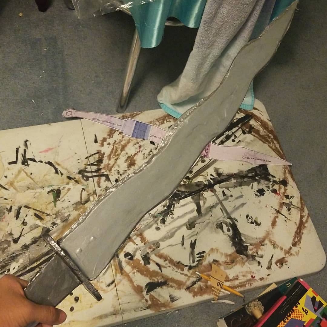 Another coat of paint and seal it with Mod Podge and I’m ready to defeat the Huns and save China for honor. Please ignore the Jackson Pollack painting on my work table lol #mulan #wip #cosplay #props #foam #disney #sword #disneyprincess #Disney #paint (at Phoenix, Arizona)